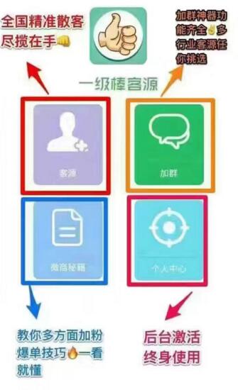 一級棒客源加粉軟件是什么?一級棒客源加粉軟件怎么樣?一級棒客源加粉軟件是可以幫助微商找到真正客戶的應(yīng)用軟件,并能幫助用戶快速便捷活動真正的客戶資源,而且使用非常方便簡單,很多用戶都覺得非常實用,所以小編在下文寫了對一級棒客源加粉軟件具體介紹,新用戶覺得好用的話就下載一個使用吧!激活一級棒客源加粉軟件請加微信:18339998767